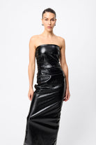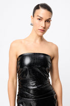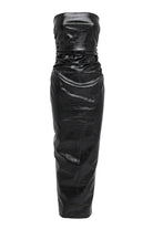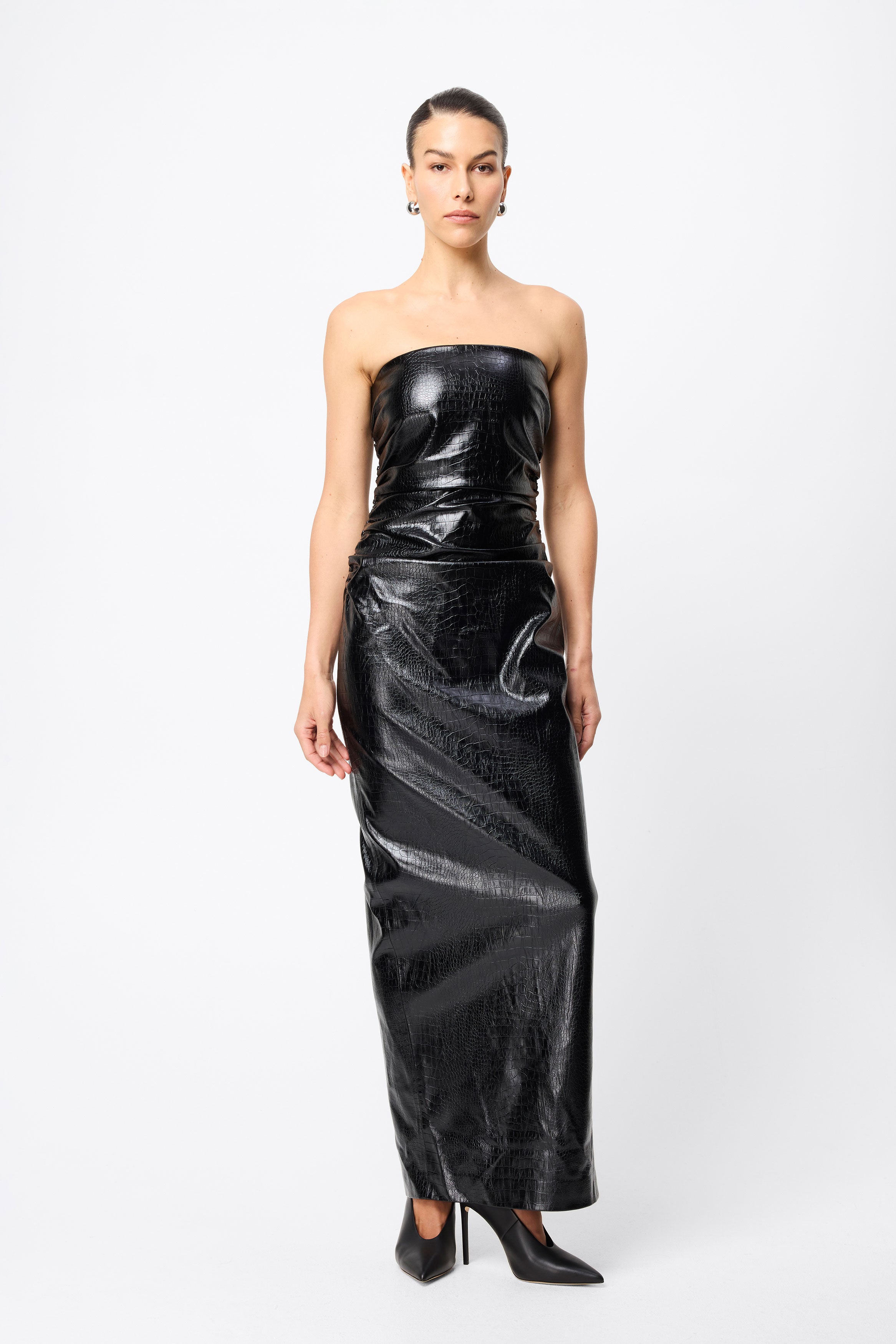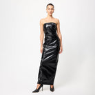 Where classic cuts meet edgy textures, the Salt Water Dress delivers a modern impact. Crafted from luxe faux croc leather, this strapless midi silhouette features subtle side ruching, a centre-back split, and an invisible zip closure for a polished finish. Fully lined for a flawless fit, this evening-ready piece pairs perfectly with your favourite heels for a sleek and sophisticated look.