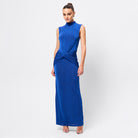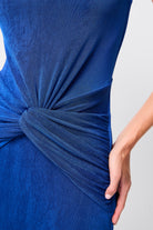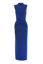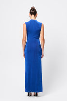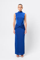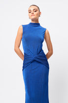 The Severance Maxi Dress in Cobalt embodies sleek sophistication with a modern edge. Crafted from a premium stretch textured jersey with a subtle sheen, this form-fitting silhouette is designed to move effortlessly with the body. A subtle raised neckline and sleeveless cut offer clean lines, while a gathered knot detail at the waist adds definition and visual interest. Striking yet understated, this dress guarantees you'll stand out at your next event.
