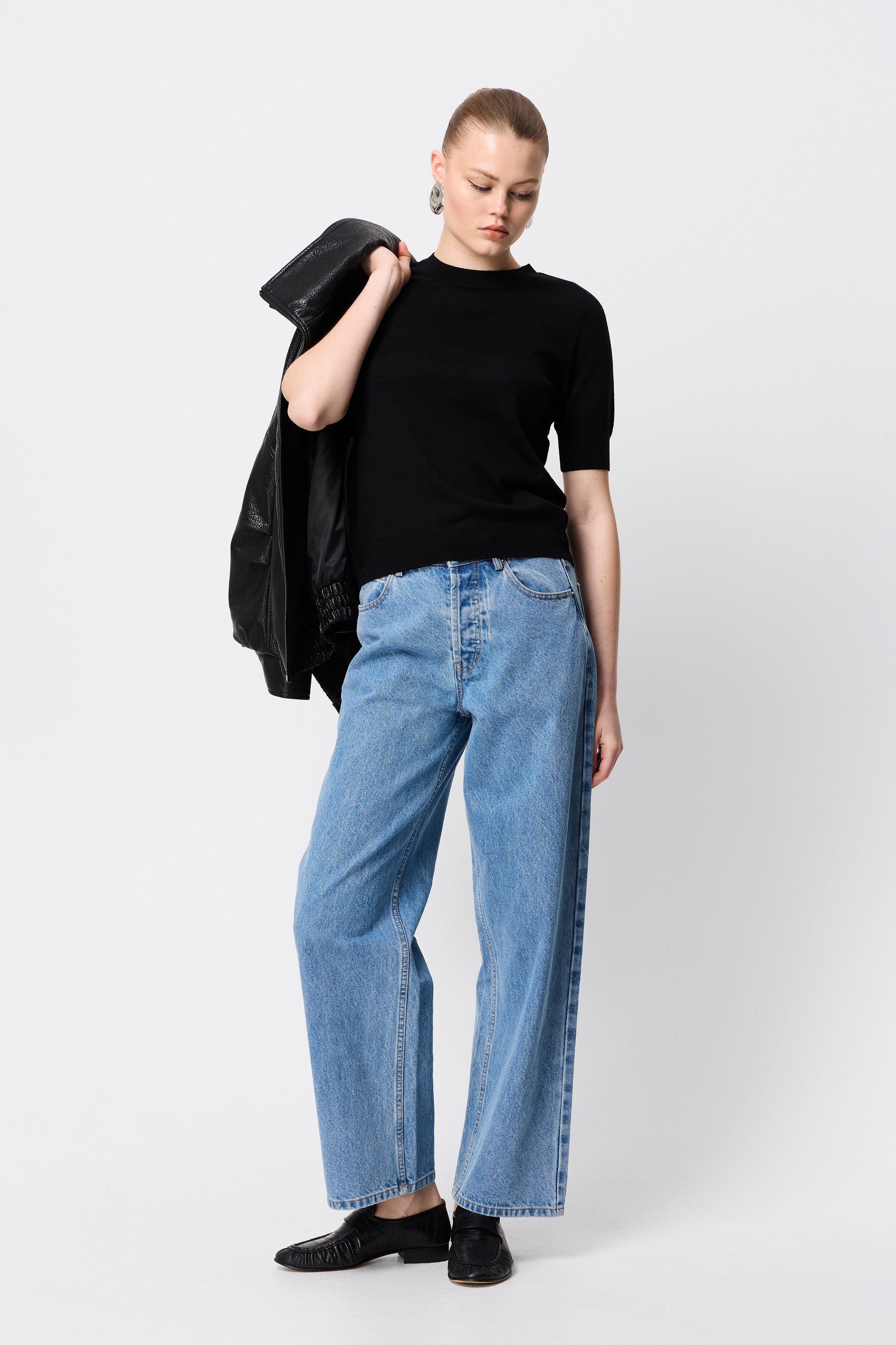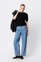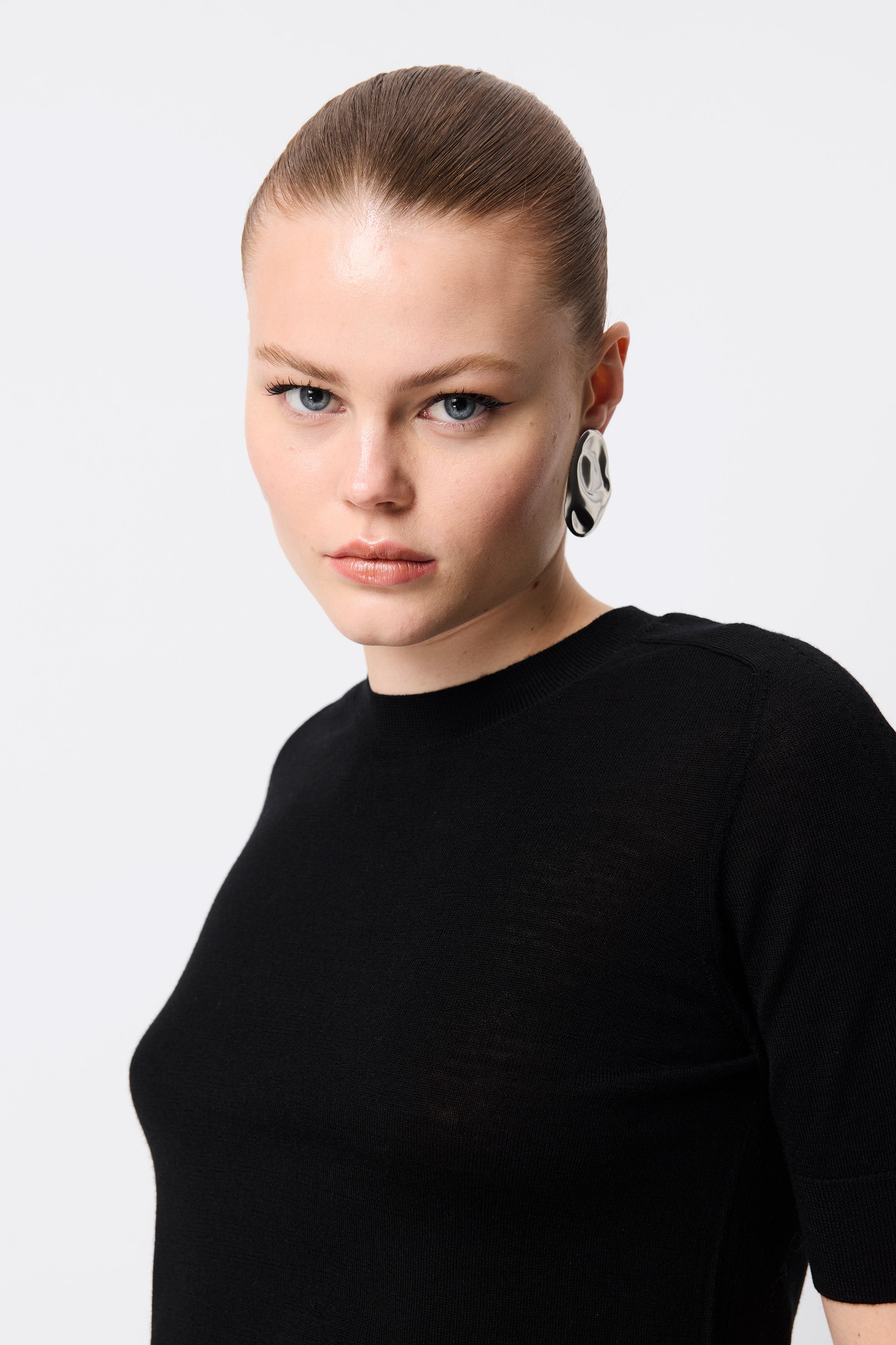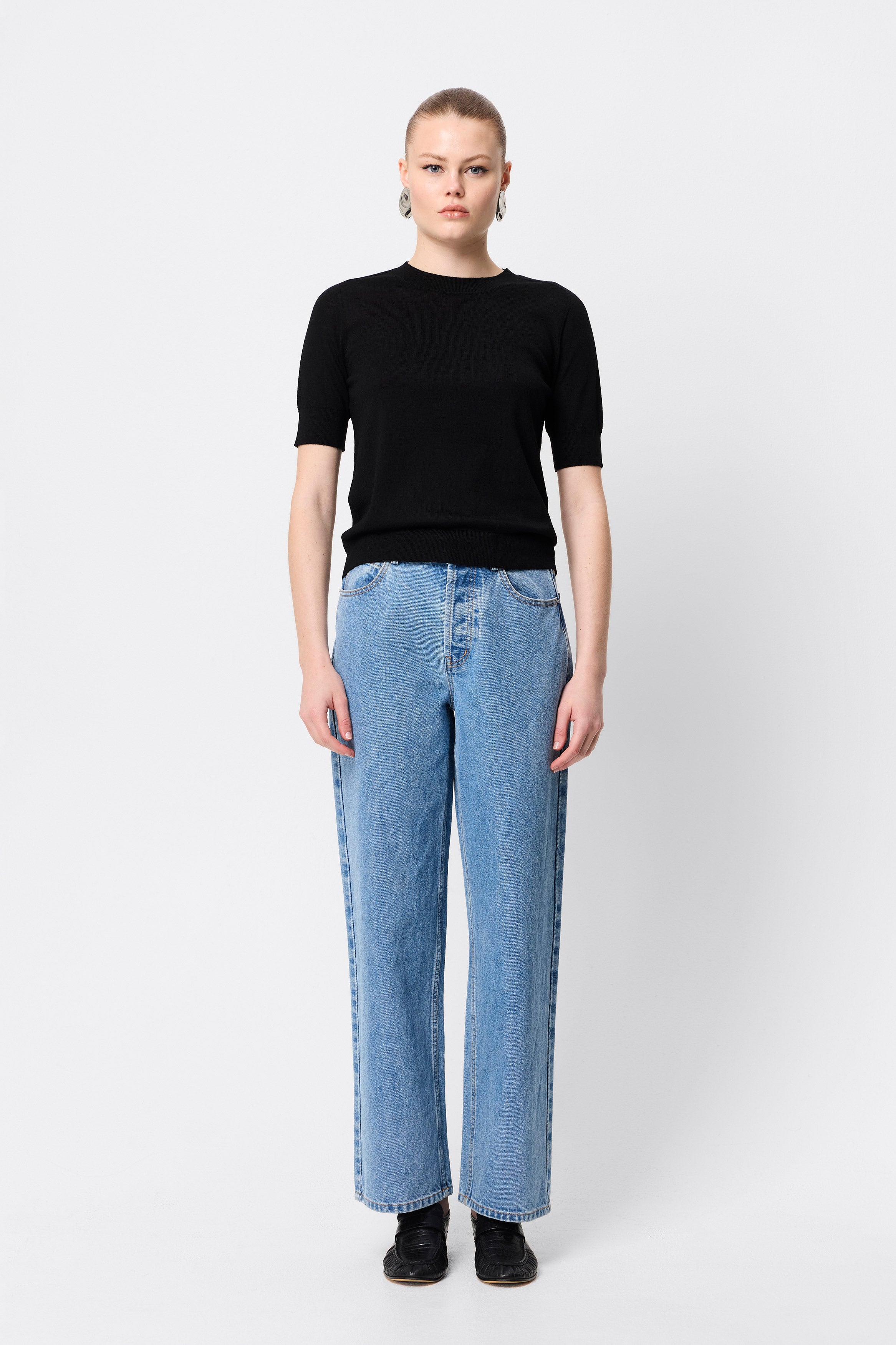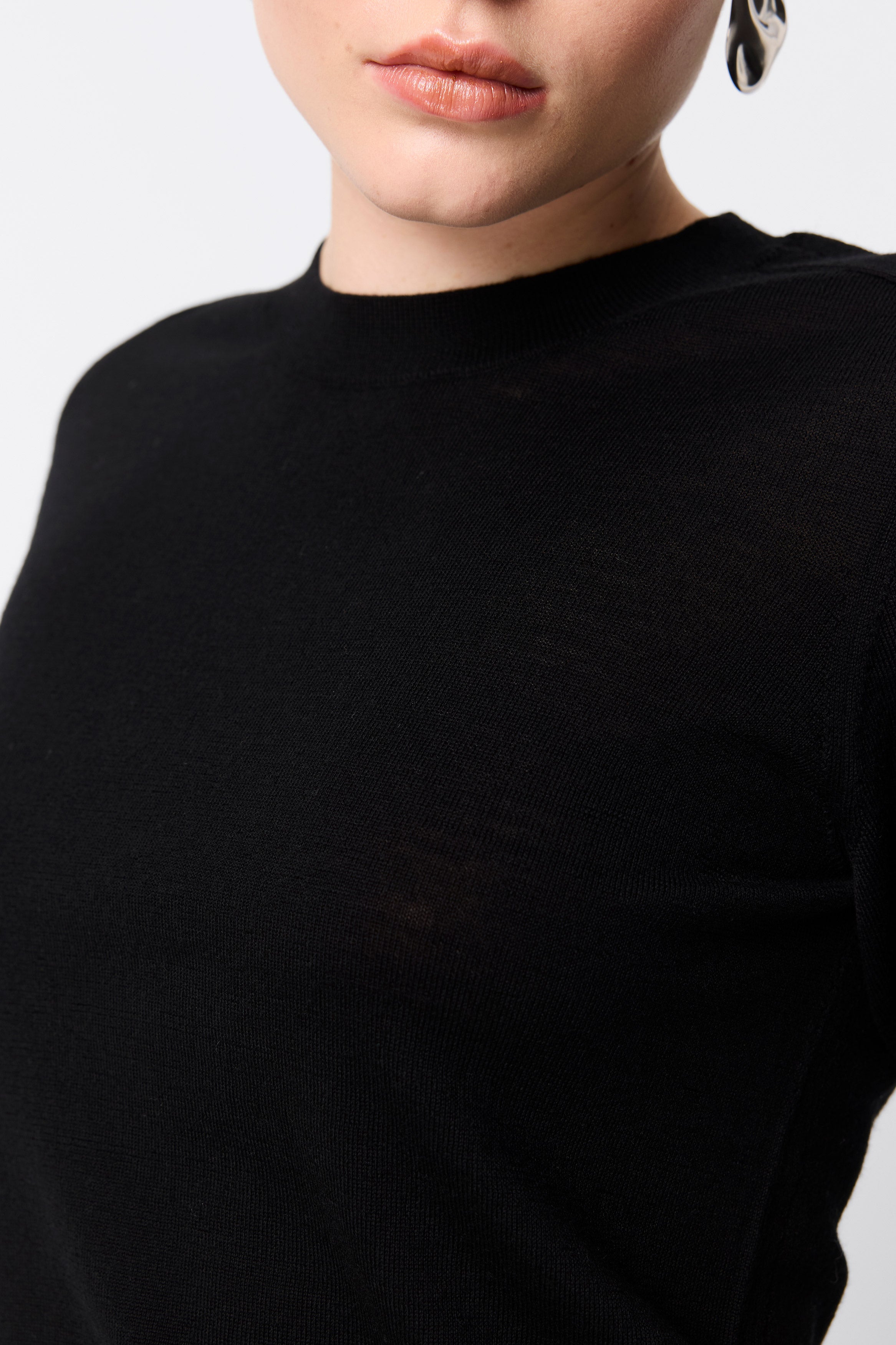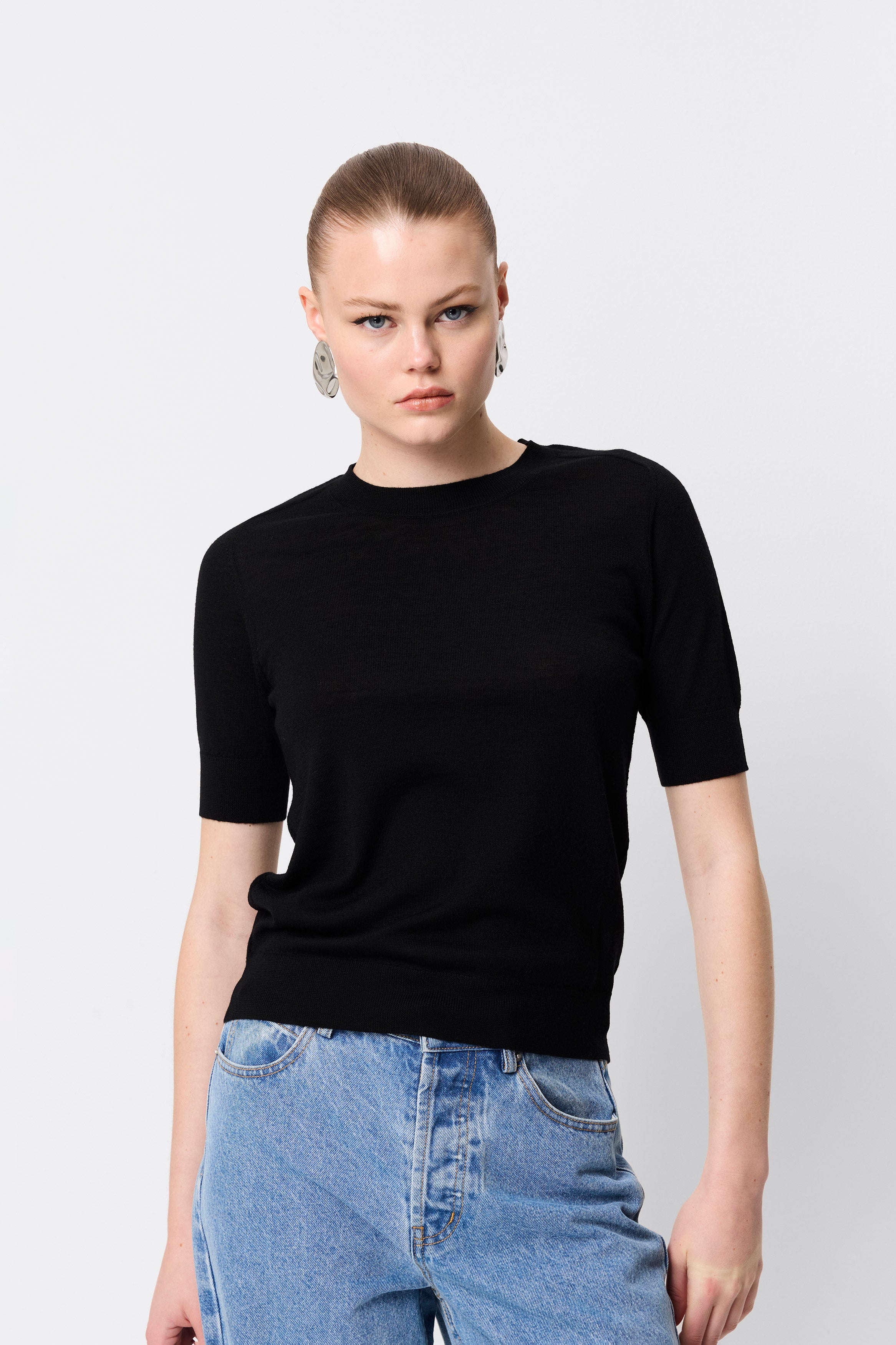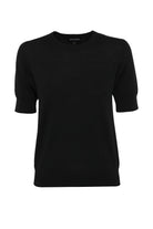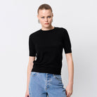 The Sloane Tee in Black redefines everyday dressing with understated sophistication. Crafted from premium 100% Merino wool, this piece offers a soft, breathable feel with a body-skimming silhouette. Designed with a classic crew neckline and short sleeves finished with ribbed trims, it delivers both comfort and refinement. Perfect as a layering piece or a stand-alone statement, the Sloane Tee is a versatile wardrobe essential you’ll return to season after season.