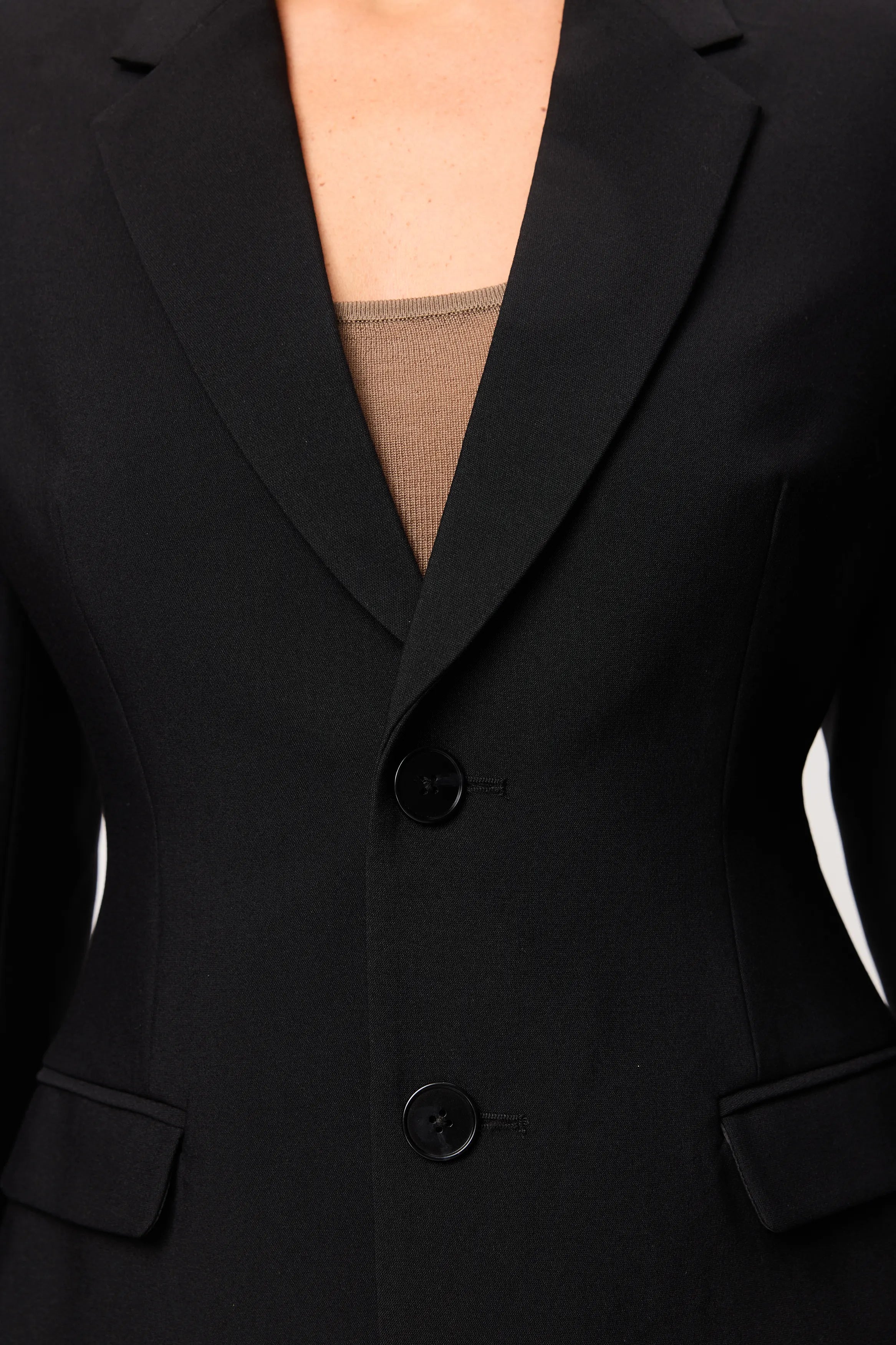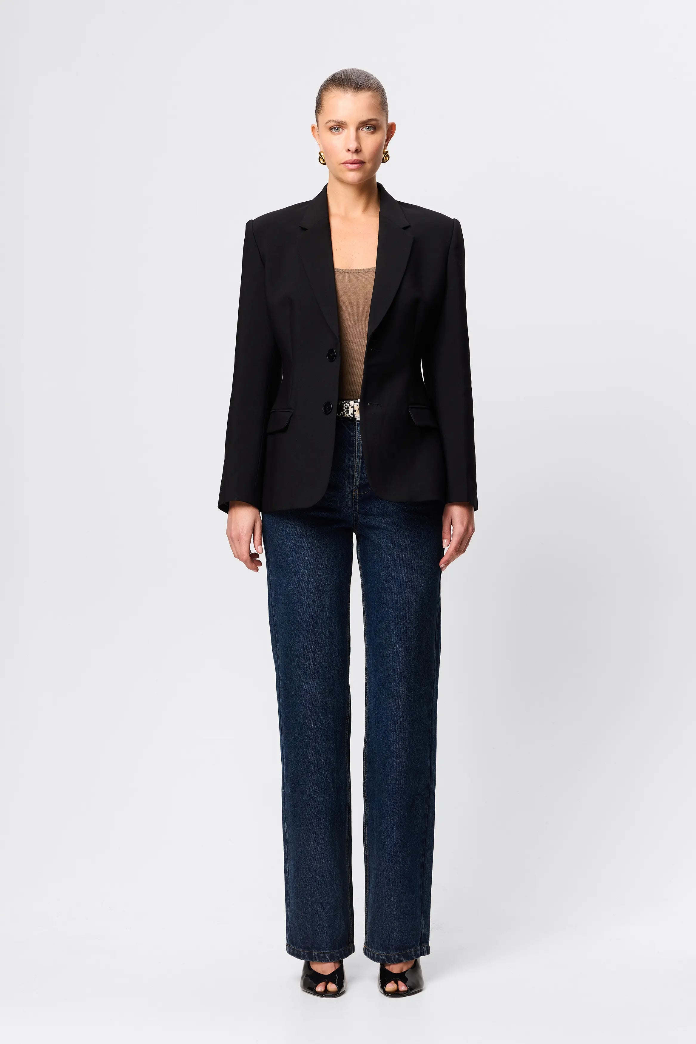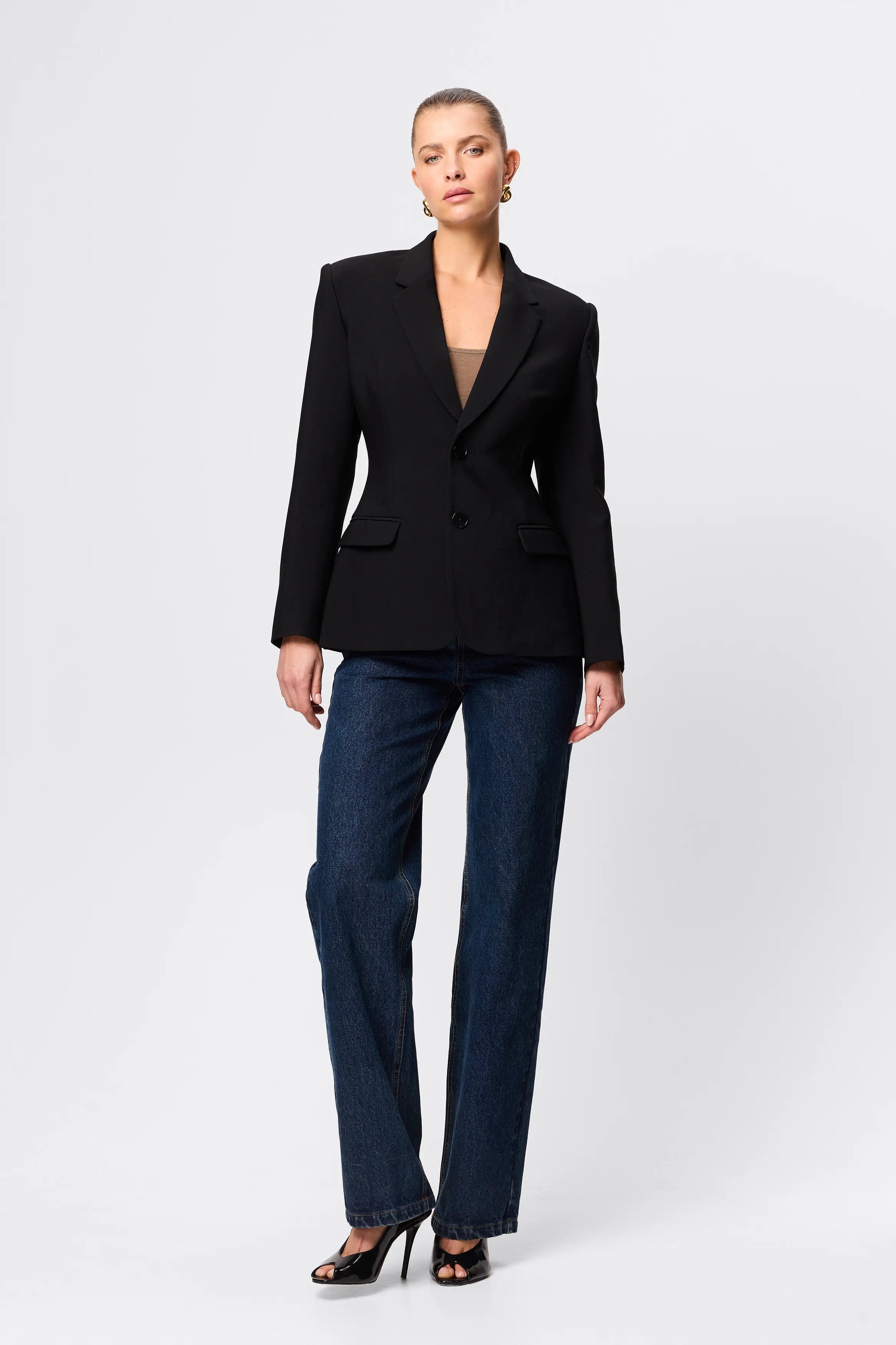 The Sonder Blazer in Black is a refined wardrobe staple, tailored in a heavyweight twill suiting fabrication that offers structure with a polished finish. Designed with a sharp lapel and a contoured waist, the silhouette balances classic tailoring with a modern edge, making it equally suited to elevated daywear or after-dark styling. Pair effortlessly with denim for understated polish or style with the matching Sonder Pant for a confident, considered look. Inspired by Mossman’s signature approach to modern elegance and detail.